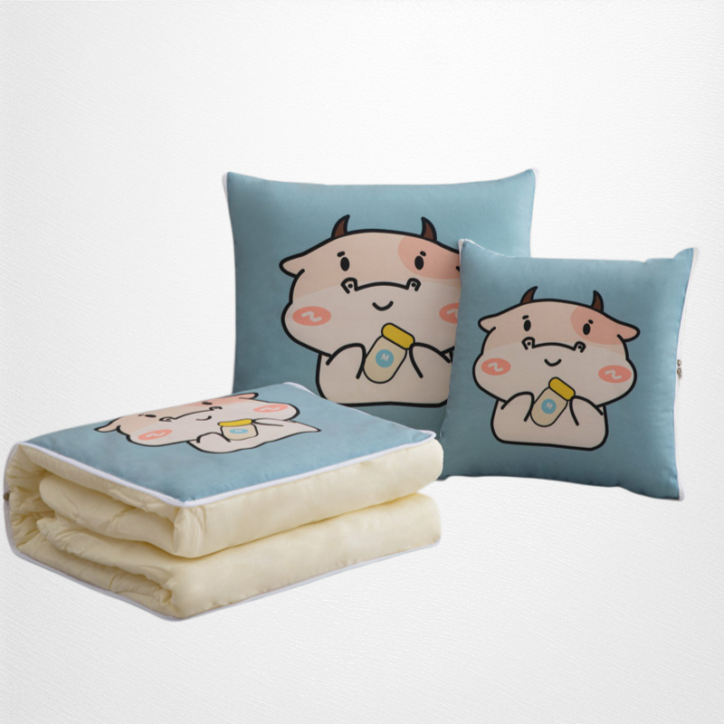 Cartoon Plush Pillow & Air Conditioner Blanket Dual-Use for Office Rest