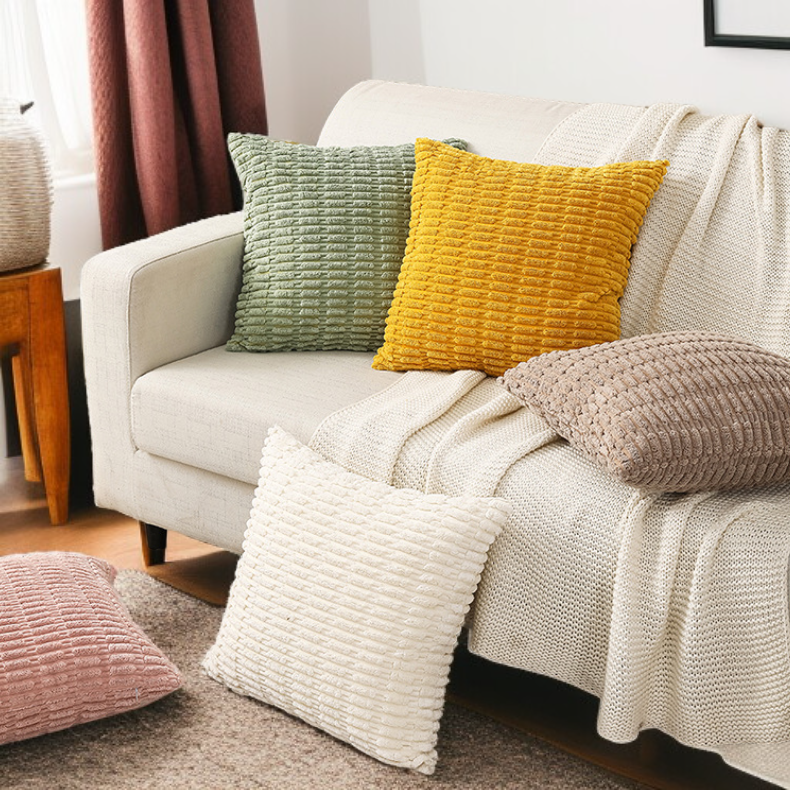 ● Crafted from premium corduroy fabric, this cushion cover offers a soft, comfortable touch while adding a modern, textured look to any sofa or armchair.